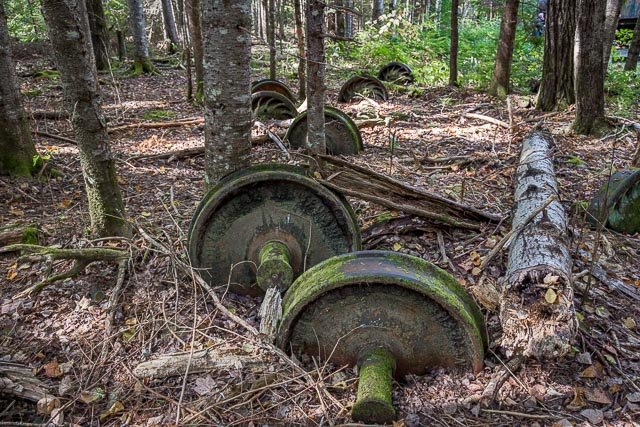 Remnants of the tramway and locomotives still survive in Maine’s Tramway Historic District, part of the Allagash Wilderness Waterway.