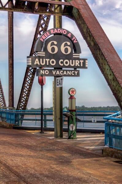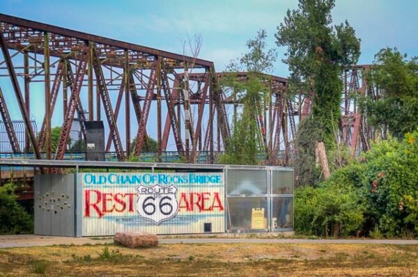 Chain of Rocks Bridge is one of the more interesting bridges in America. It’s hard to forget a 30-degree turn midway across a mile-long bridge more than 60 feet above the mighty Mississippi. For more than three decades, the bridge was a significant landmark for travelers driving Route 66.