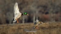 If someone at a park is feeding bread to ducks, chances are there are Mallards in the fray. Perhaps the most familiar of all ducks, Mallards occur throughout North America and Eurasia in ponds and parks as well as wilder wetlands and estuaries. The male’s gleaming green head, gray flanks, and black tail-curl arguably make it the most easily identified duck. Mallards have long been hunted for the table, and almost all domestic ducks come from this species.